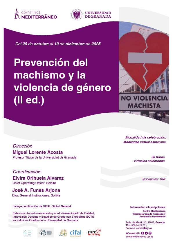 Presentación del curso. (3h) Elvira Orihuela Alvarez, Coordinadora, Soifi4e Miguel Lorente Acosta, Profesor titular de la Universidad de Granada Carmen Ruiz Repullo, Profesora Ayudante Doctora de la Universidad de Granada |